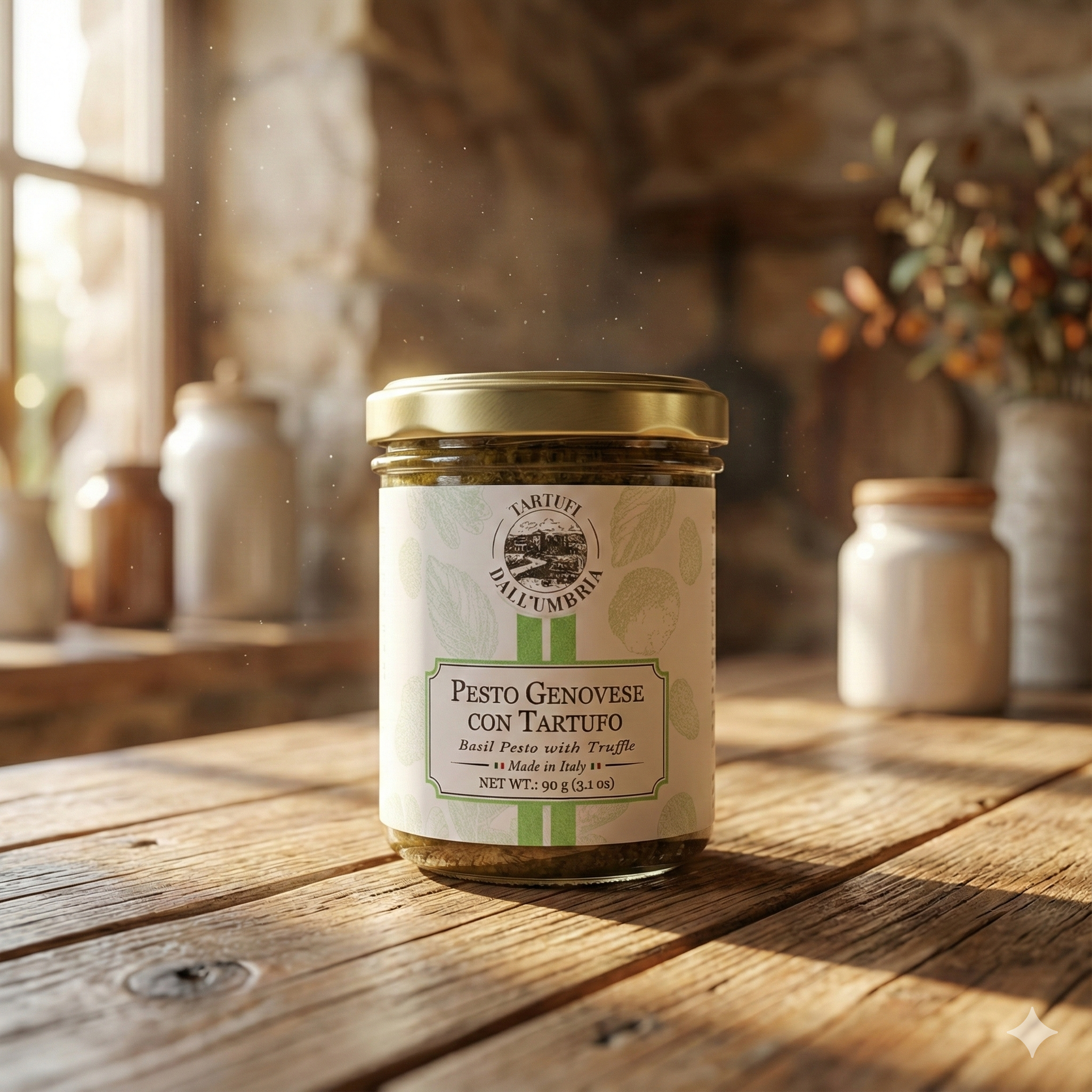 Elevate your pasta game with this luxurious basil pesto infused with earthy truffle notes. Crafted from fresh basil and premium truffle, it brings restaurant-quality depth to any dish—toss with pasta, swirl into soups, or dollop onto grilled vegetables. A gourmet shortcut that transforms simple meals into something truly special. Perfect for those who appreciate the finer flavors without the fuss.