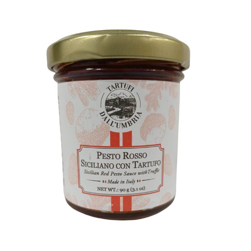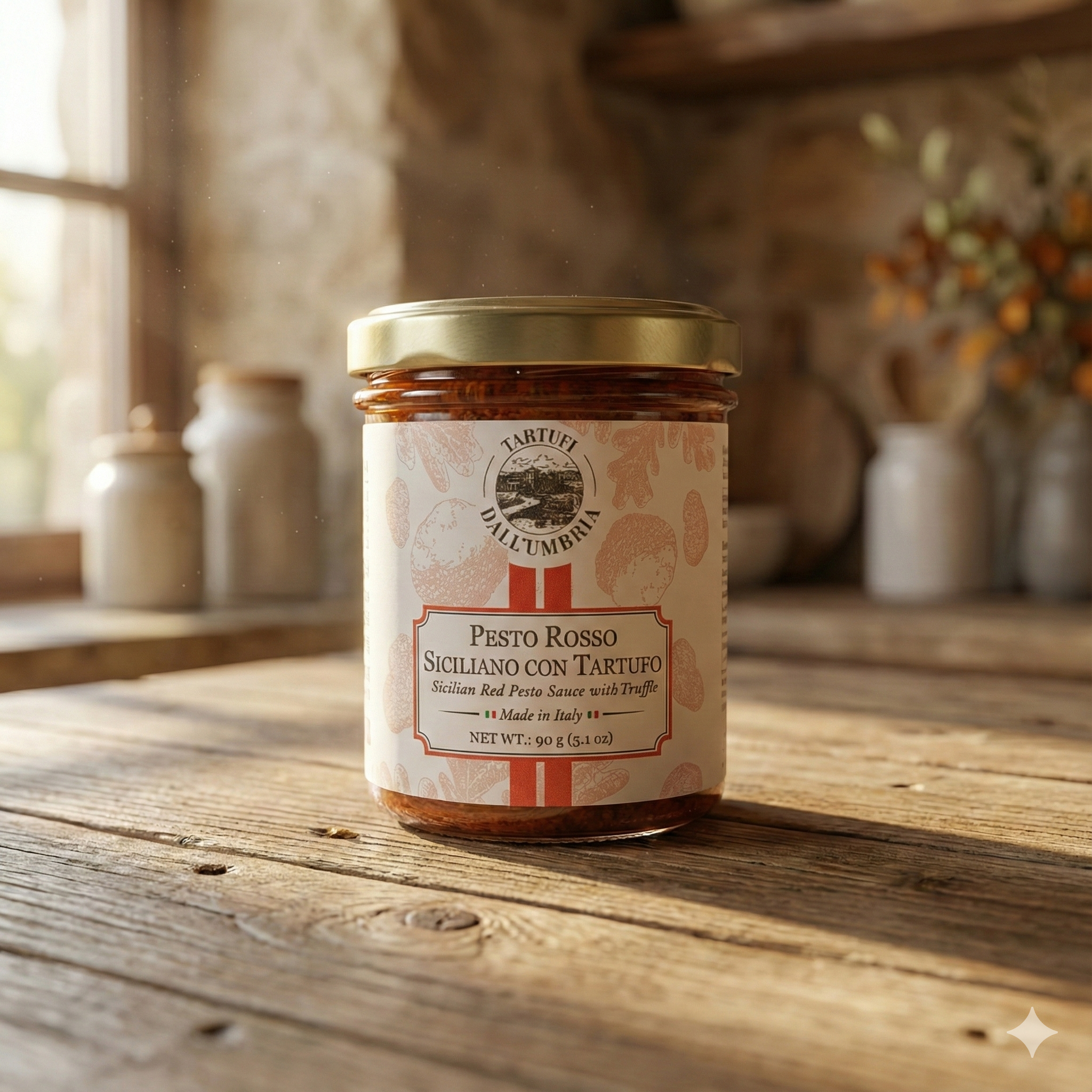 Discover the bold, vibrant flavors of Sicily in every spoonful. This red pesto sauce marries sun-ripened tomatoes with aromatic basil, garlic, and pine nuts, elevated by the earthy sophistication of truffle. Perfect for pasta, bruschetta, or as a dip for crusty bread, it brings authentic Mediterranean taste to your table without the fuss. A gourmet shortcut that tastes like you've been simmering it all day.