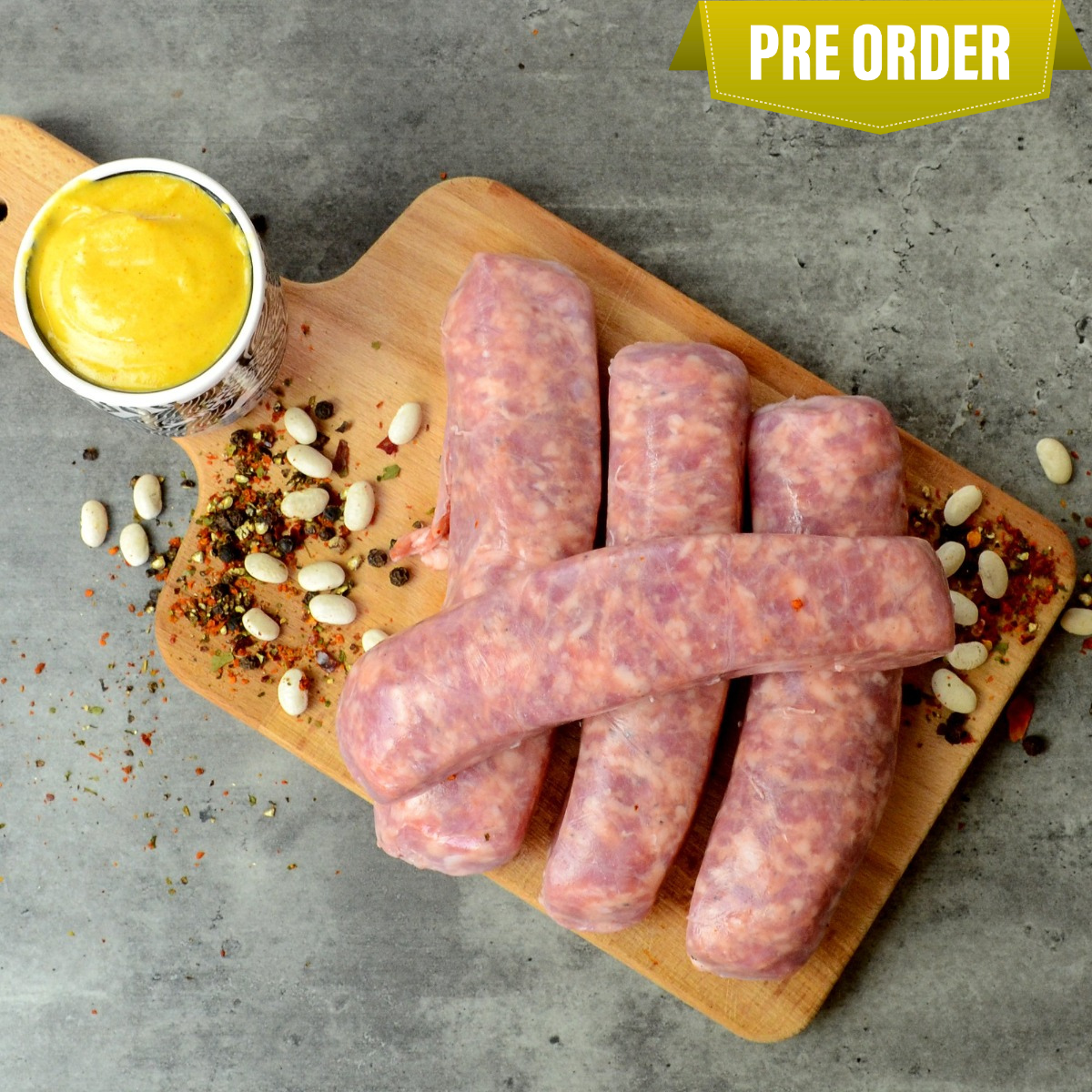Product: The real Toulouse sausages made of fresh pork meats and spices. These sausages are perfect for cassoulet or with mashed potatoes, lentils, fried potatoes or aligot.
